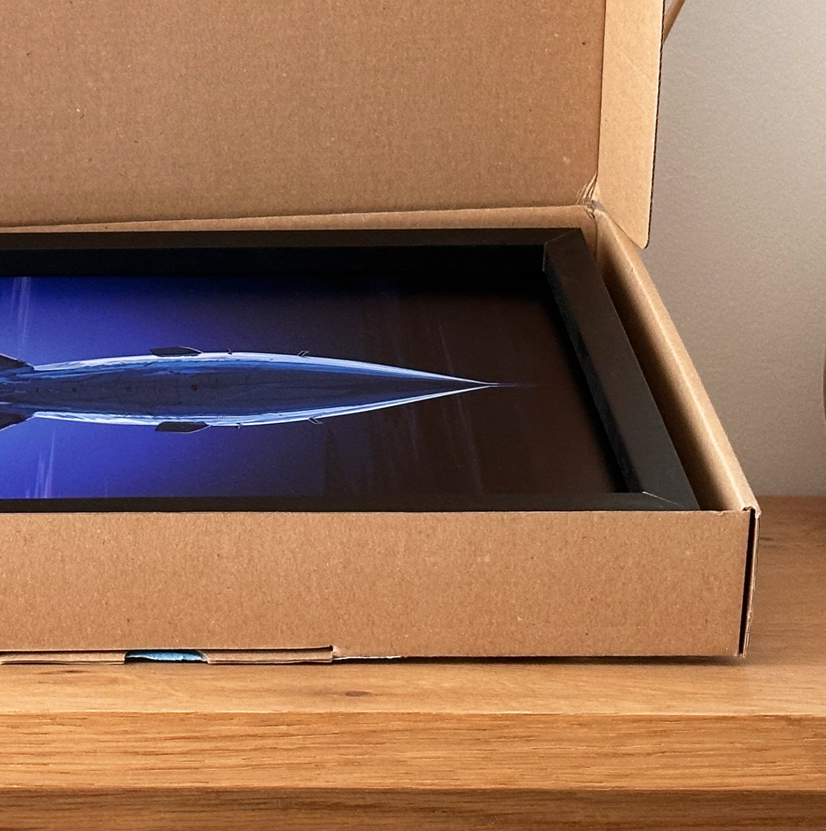 Retirage de dessin d’un avion légendaire présenté en petit cadre noir à poser ou à fixer.