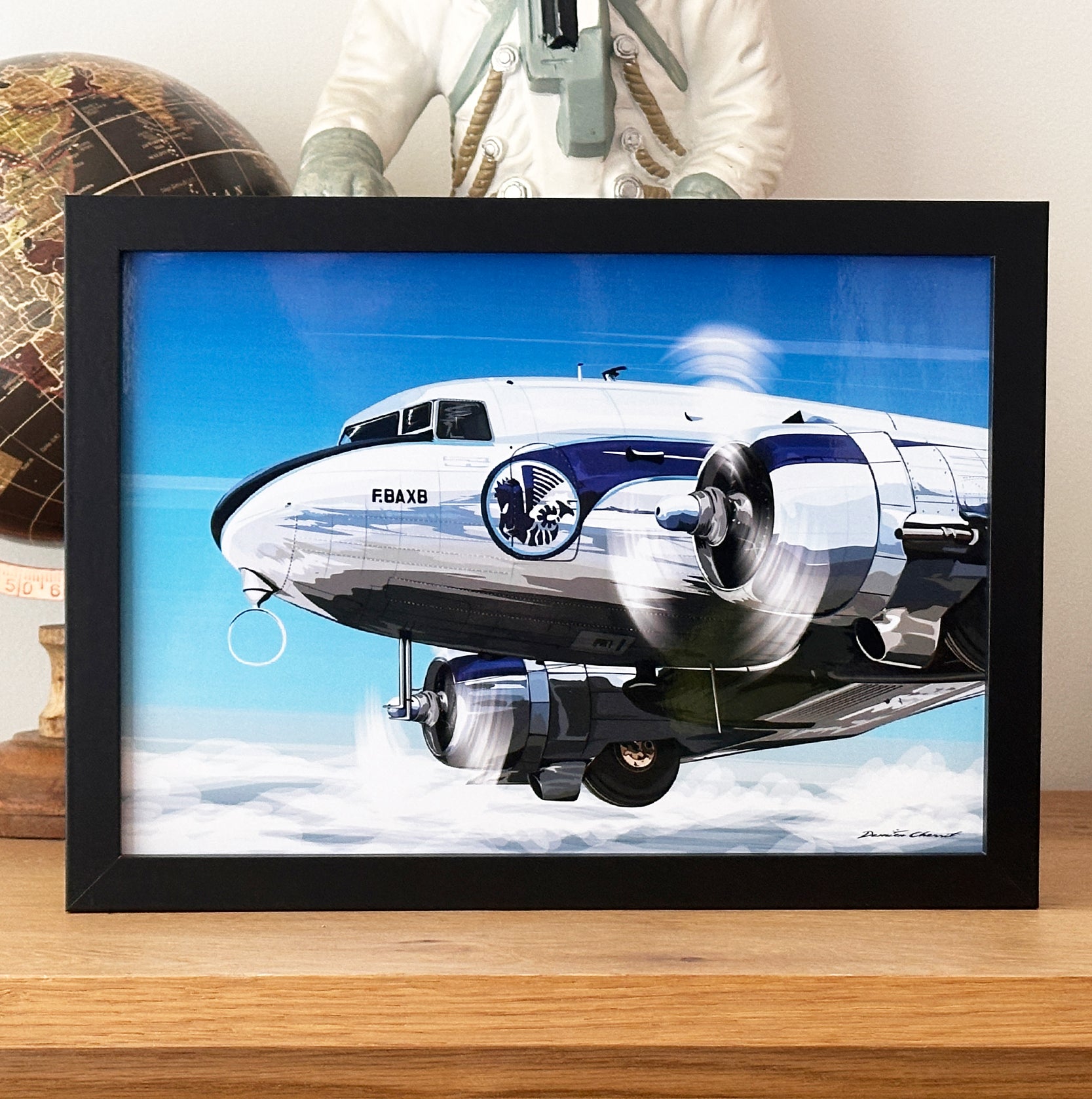 Retirage de dessin d’un avion légendaire présenté en petit cadre noir à poser ou à fixer.