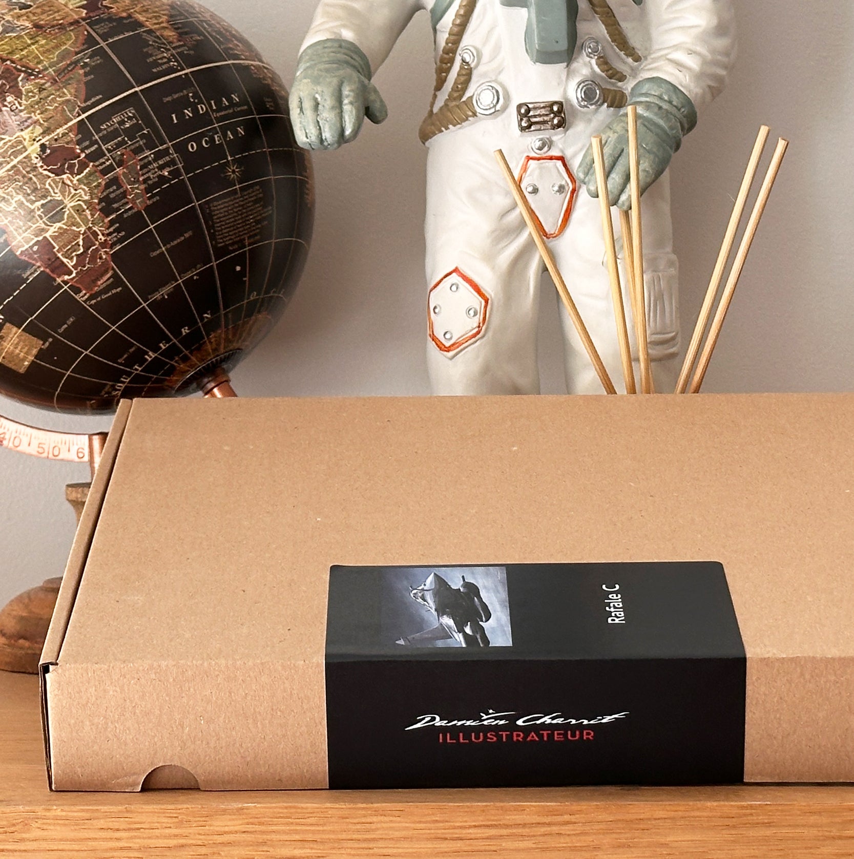 Retirage de dessin d’un avion légendaire présenté en petit cadre noir à poser ou à fixer.